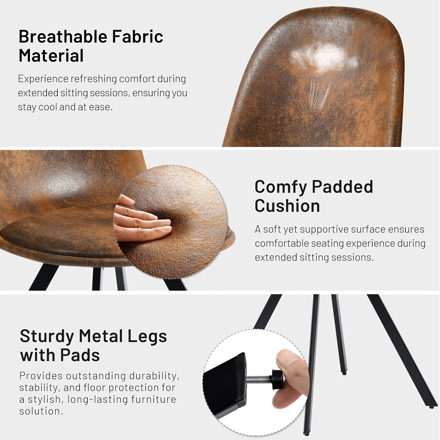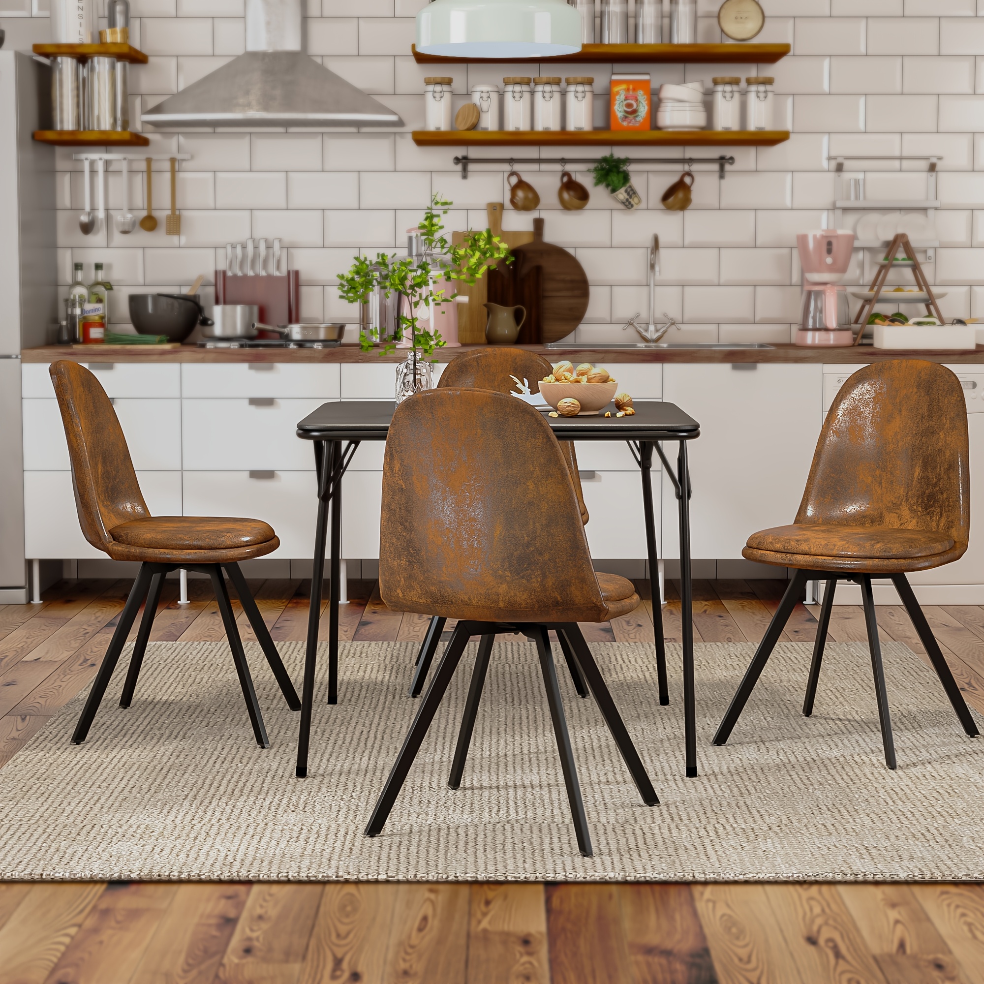 Swivel Suede Dining Chairs Set Of 4, Side Chair Armelss Mid Back with Metal Legs for Dining Room, Kitchen, Restaurant, Cafe, Brown